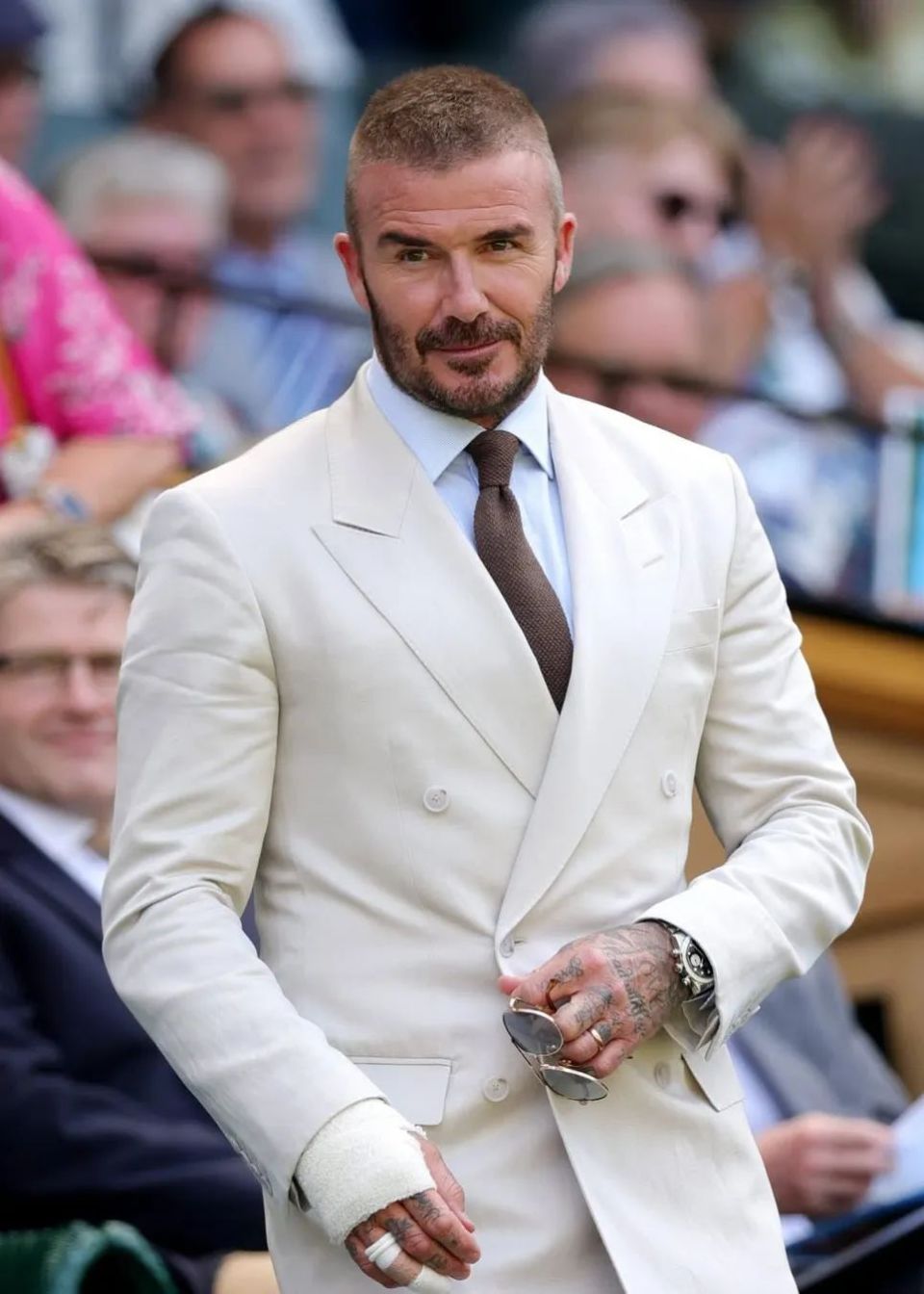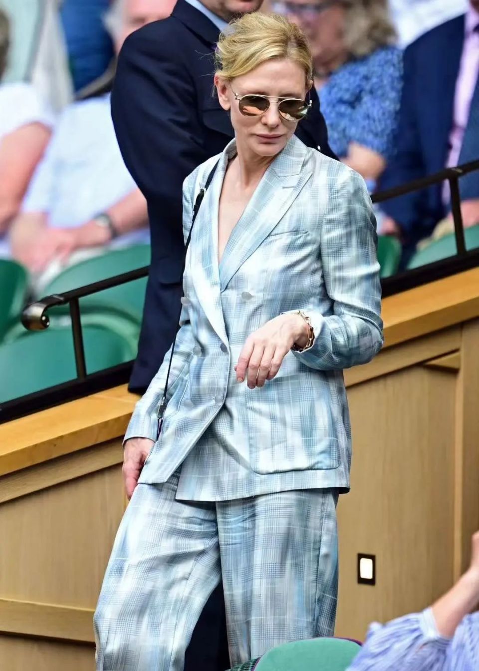 的确,由王室成员、社会名人与当红明星组成的看台观众,将温网赛场变为一场名流社交的盛会,尤其是受邀进入皇室包厢的各路名流,都需遵守得体着装的穿衣规则:比如男士必须着正装;女士禁止穿短裙,裙长需到膝盖以下等等。